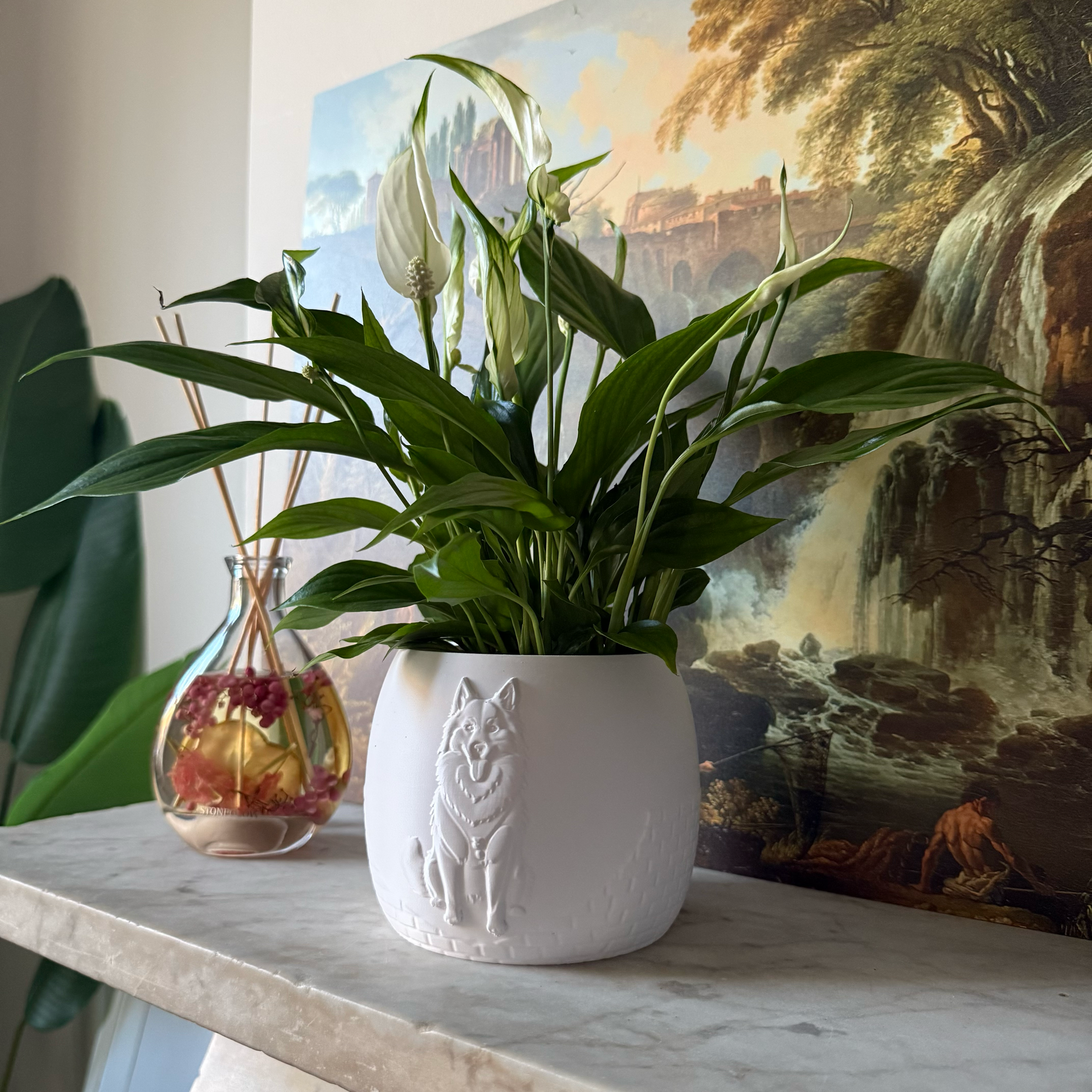 This samoyed/ husky design dog plant pot is sculpted and designed with creating a meaningful keepsake that’s also a functional self-watering plant pot. Designed for dog lovers who want something truly special for their home or a heartfelt gift that can’t be found anywhere else.