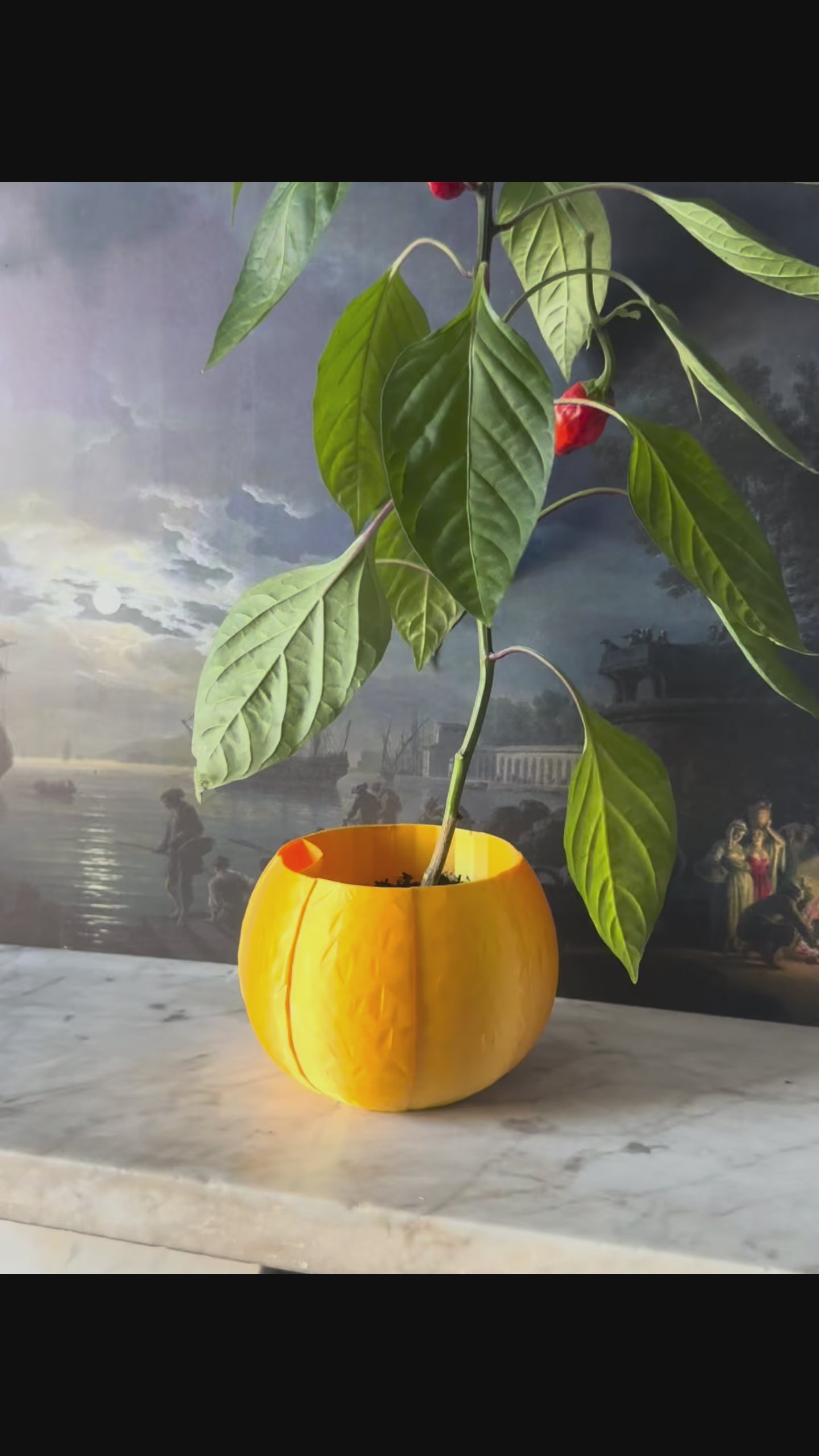 Repot your plant into the pot, pour 200ml of water into the opening at the top to fill the hidden reservoir. Let capillary action supply the plant with as much water as it needs over time.